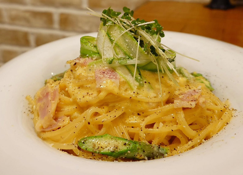 アスパラとベーコンのカルボナーラ
