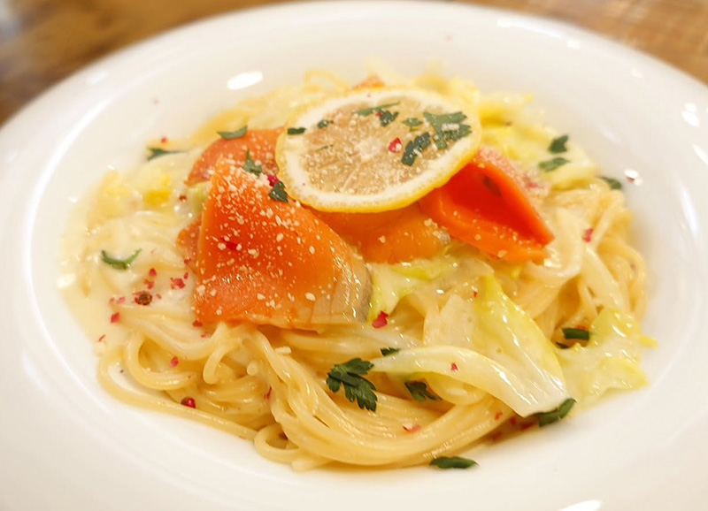 春キャベツとスモークサーモンのレモンクリーム