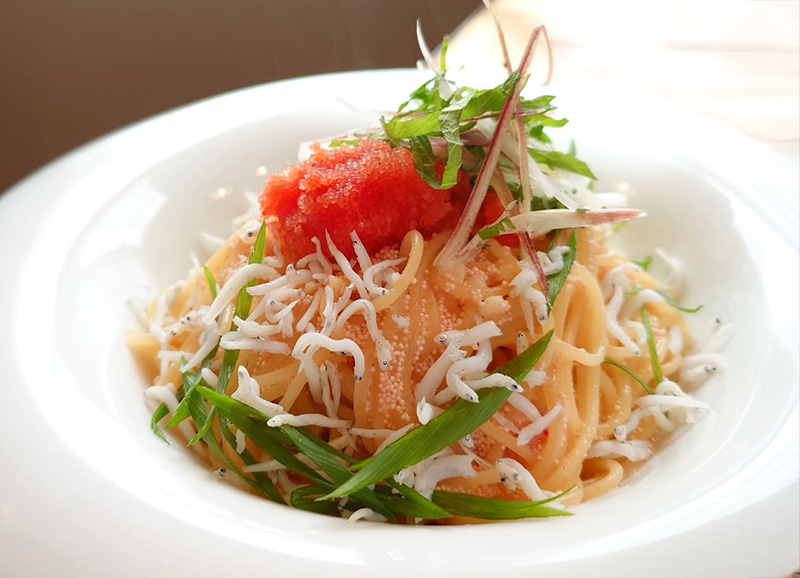 明太子と釜揚げしらすの和風パスタ 香味野菜添え