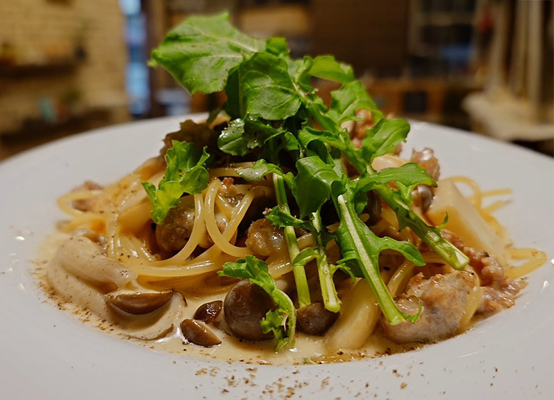香ばしい茸のクリームパスタ。